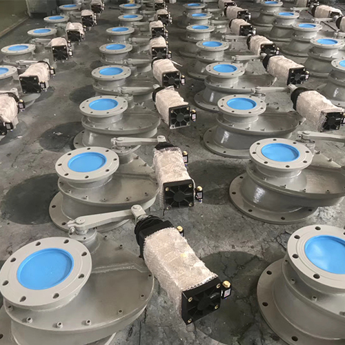 气动旋转阀通常也称之为摆动阀、平移阀,它的密封形式采用硬密封。它是由一个旋转气缸带动阀门轴承,阀板是通过花键与阀门轴承所固定,阀板在气缸执行器运动下动作。气缸上装有磁敏开关、行程开关或者接近开关来对阀门位置进行反馈,反馈的信号直接传送给PLC控制柜